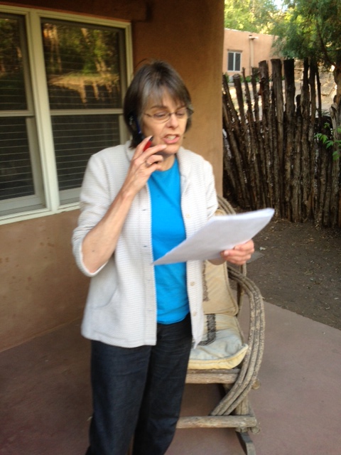 Mary Beth Tinker working the phone from Santa Fe, New Mexico, in the final hours of the Tinker Tour crowdsource campaign Friday evening