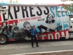 - Mary Beth Tinker poses in front of her photo on the McCormick Foundation’s Freedom Express bus during the Tinker Tour’s stop at Phoenix Military Academy in Chicago Oct. 15.