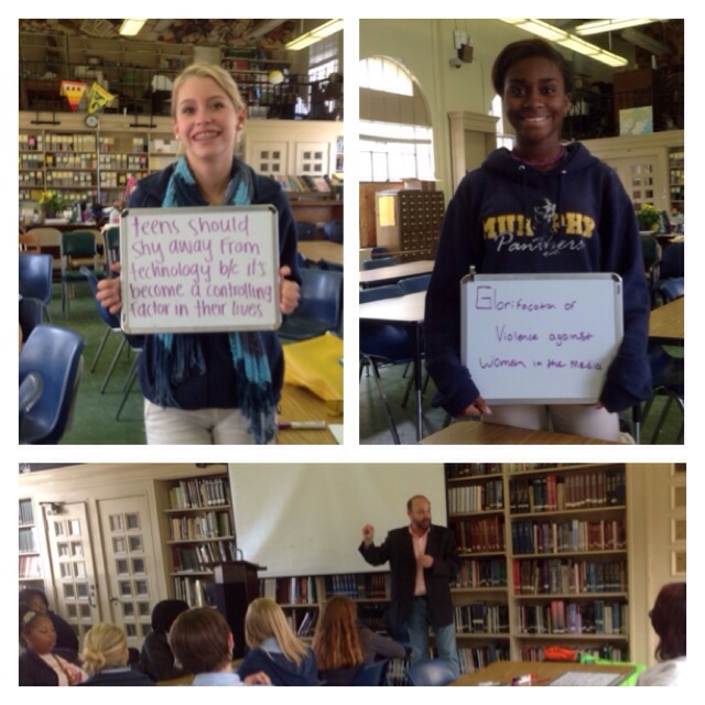 Murphy High School in Mobile, Alabama, is still in the process of rebuilding after last year’s Christmas Day tornado, but the students are moving forward. Eleventh graders Taylor Davies, left, and Natasha Ford, right, were among the journalism students that came to hear Mike and Mary Beth speak. They shared what they want to use their First Amendment rights to speak about.