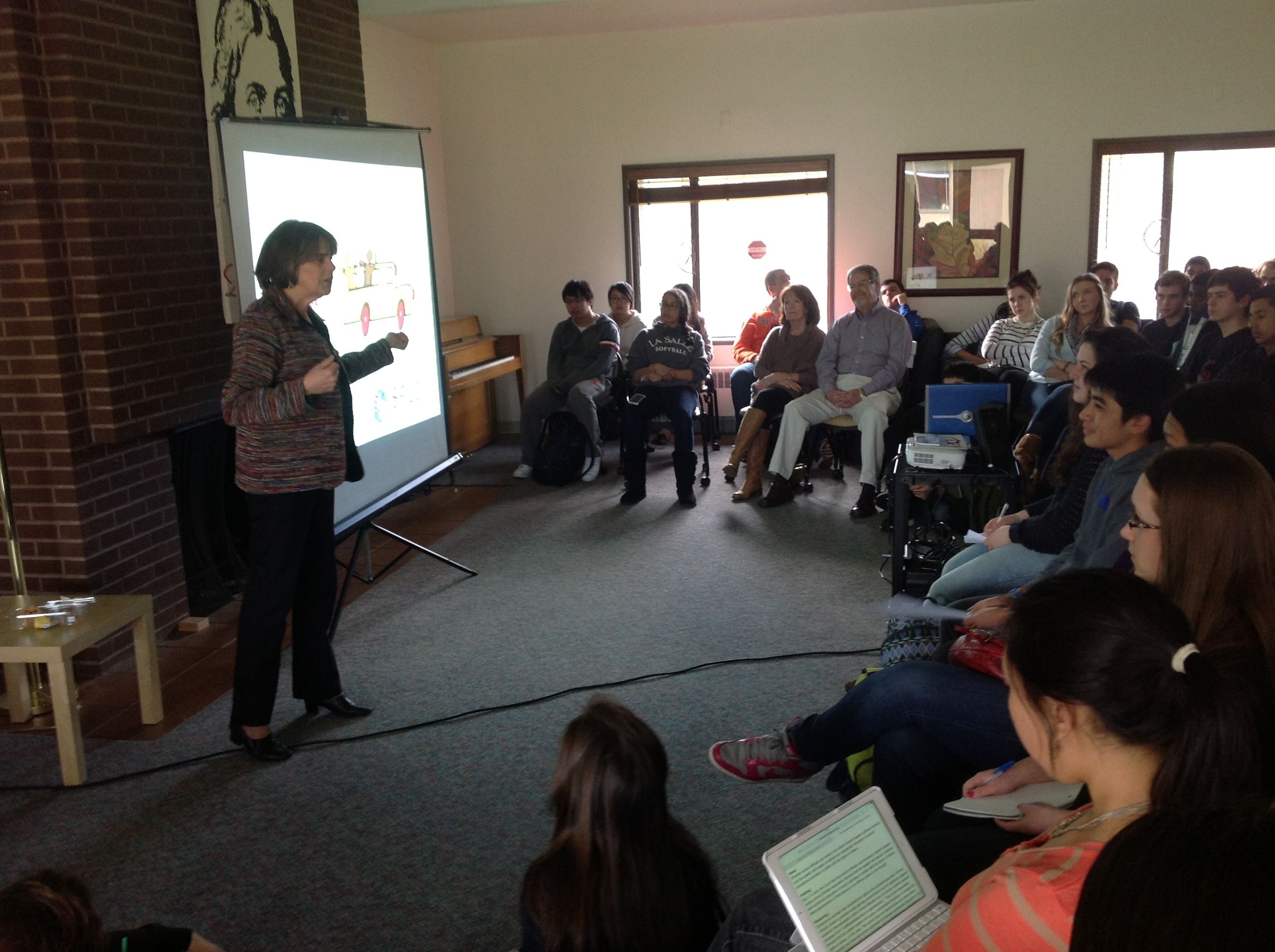 …where we spoke to a sitting-room only, after-school gathering of students and community members….
