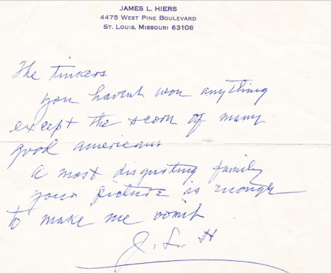 The haters heckled the kids & their families. Here’s a postcard sent to Leonard Tinker: