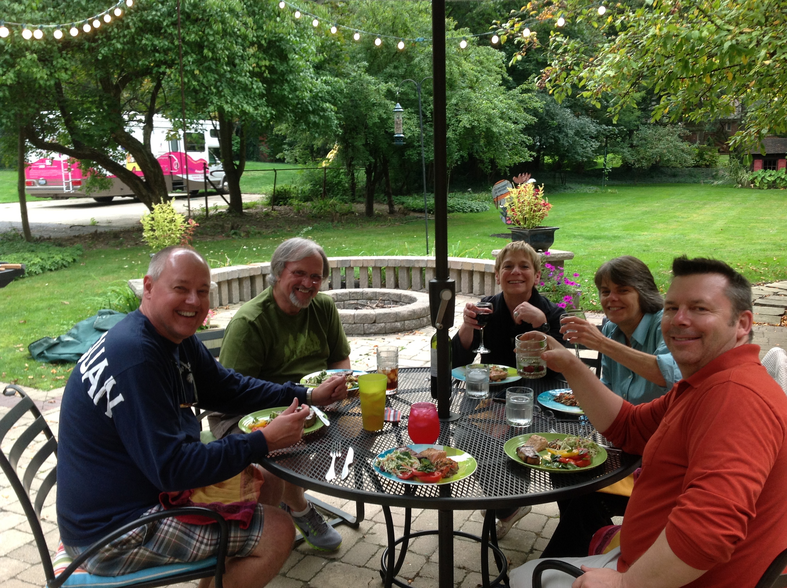 A beautiful Saturday night Tinker Tour celebration in former Student Press Law Center Executive Director Mark Goodman (far left) and Norman Mallard’s (far right) Akron, Ohio, backyard Sept. 27. John Bowen, Candace Bowen and Mary Beth Tinker toast Gabby the Tinker Tour Bus in the background.