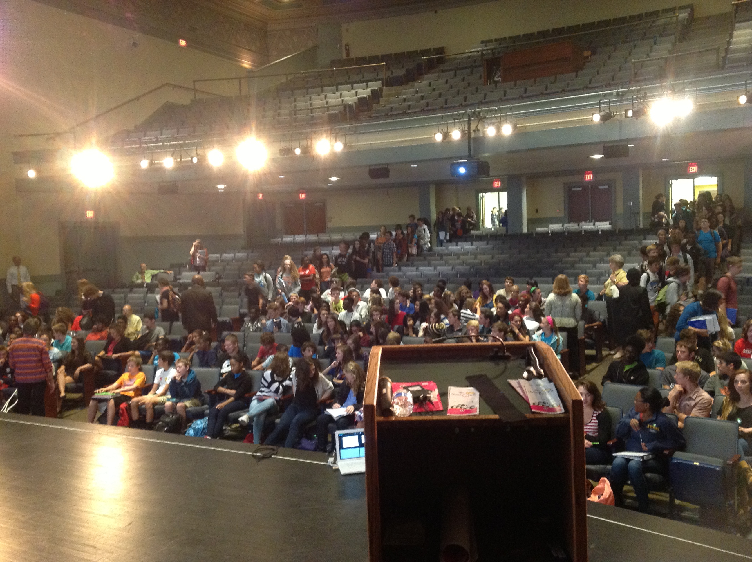 Students at Walnut Hill High School in Cincinnati, Ohio, file into auditorium during the Tinker Tour’s national free speech/press and civics education bus tour Oct. 2.