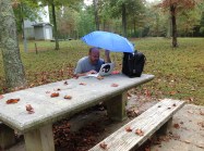 Mike Hiestand of the Tinker Tour works out of his temporary office at Tennessee’s Norris Dam State Park Oct. 3