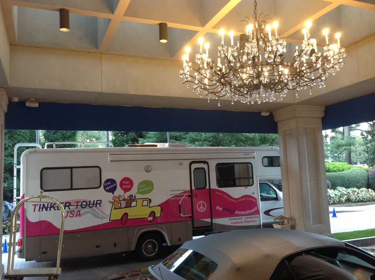 ABALRE1 Published October 6, 2013 at 2592 × 1936 Gabby the Tinker Tour bus checking into the Atlanta Ritz Carlton Oct. 3 during Tinker Tour’s stop at the American Bar Association’s Law-Related Education Conference.