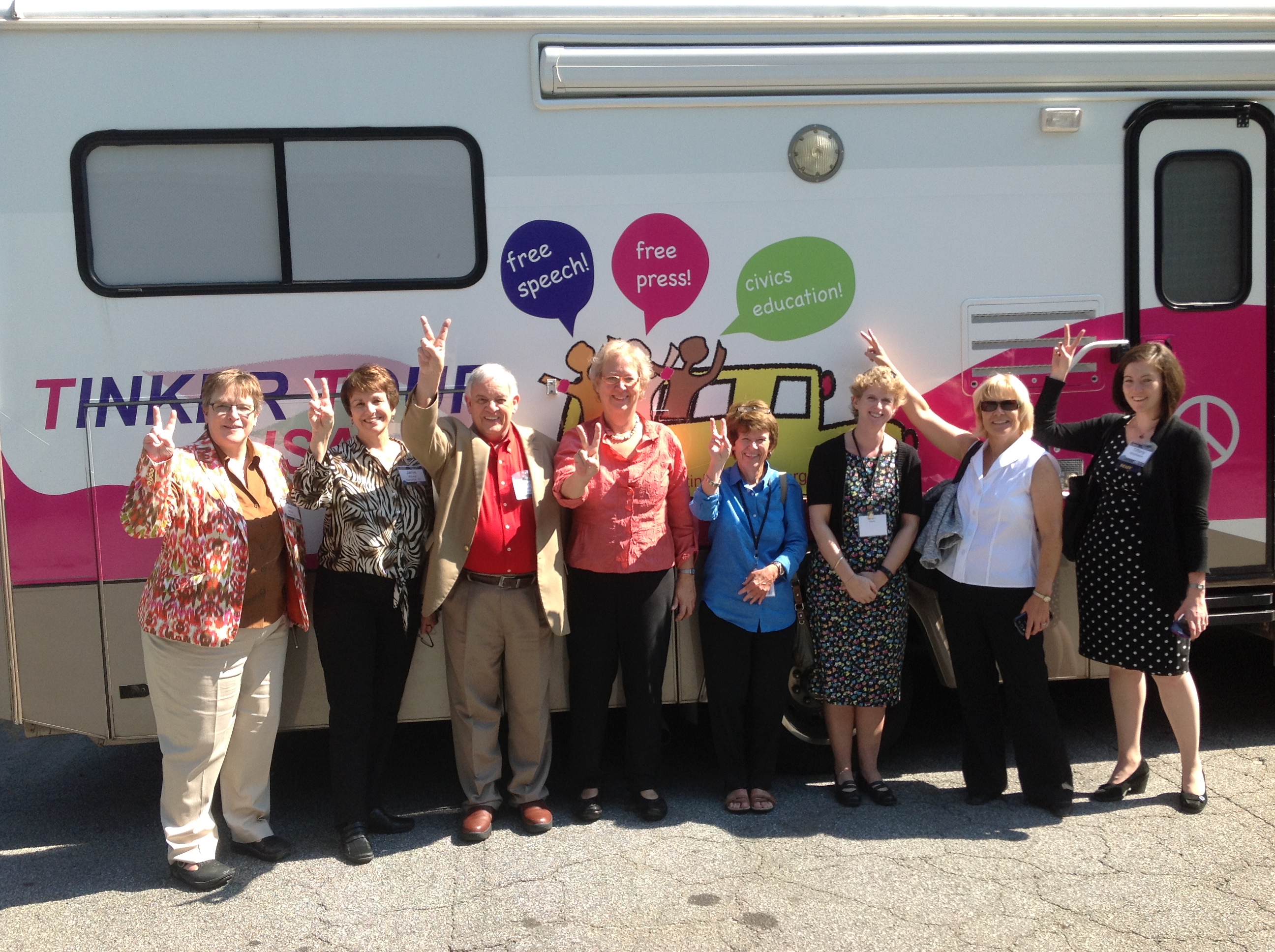 ABALRE1 Published October 6, 2013 at 2592 × 1936 “Gabby Groupy” civics educators at the American Bar Association’s Law-Related Education Conference in Atlanta show some love to the Tinker Tour Oct. 4
