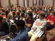 SCSPA4 Published October 12, 2013 at 2592 × 1936 Students attending South Carolina Scholastic Press Association fall conference listen to Mary Beth Tinker during Tinker Tour stop at the University of South Carolina Oct. 7