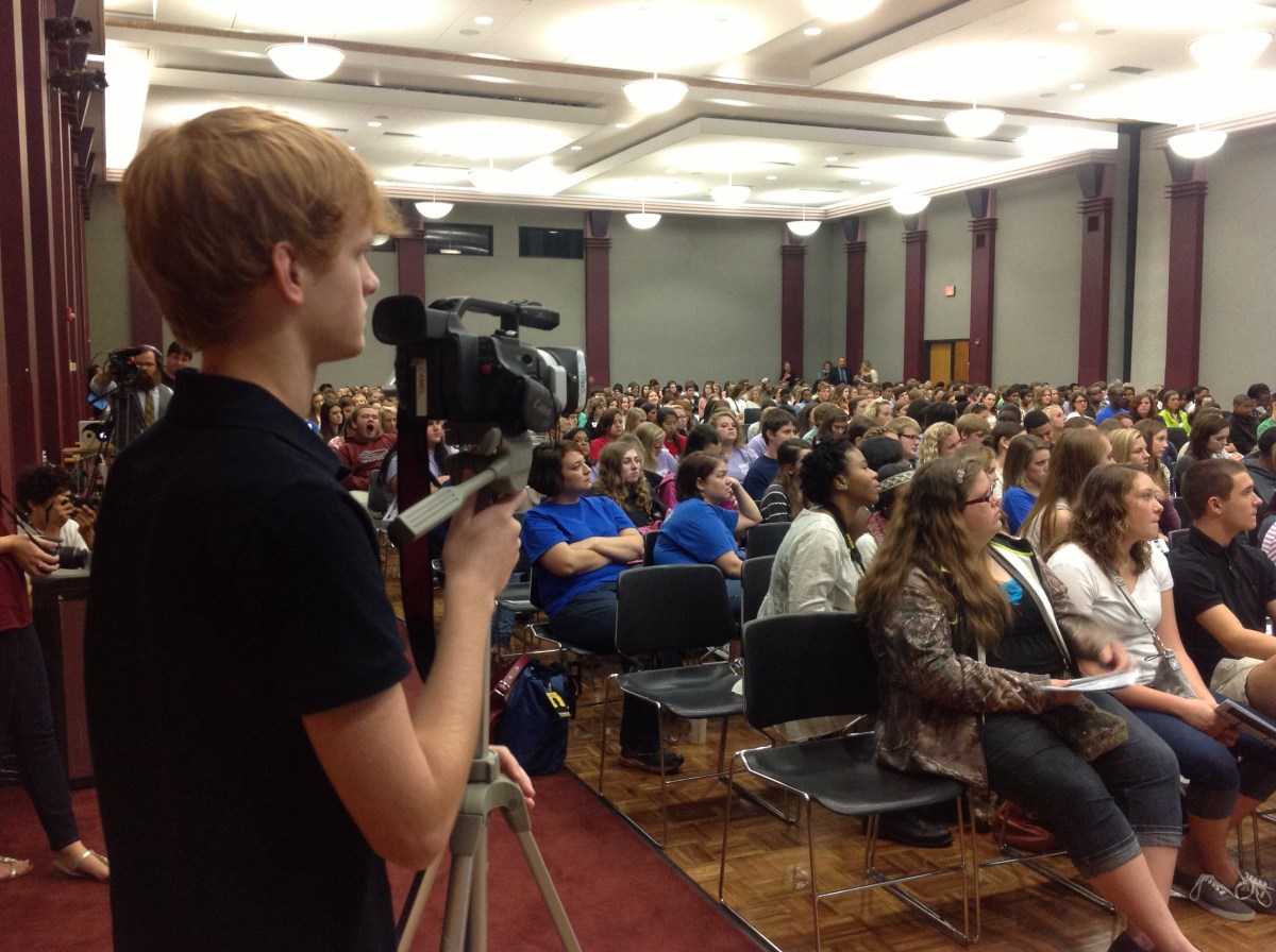 SCSPA5 Published October 12, 2013 at 2592 × 1936 Student media were among those covering Mary Beth Tinker’s keynote address at the South Carolina Scholastic Press Association’s fall conference Oct. 7