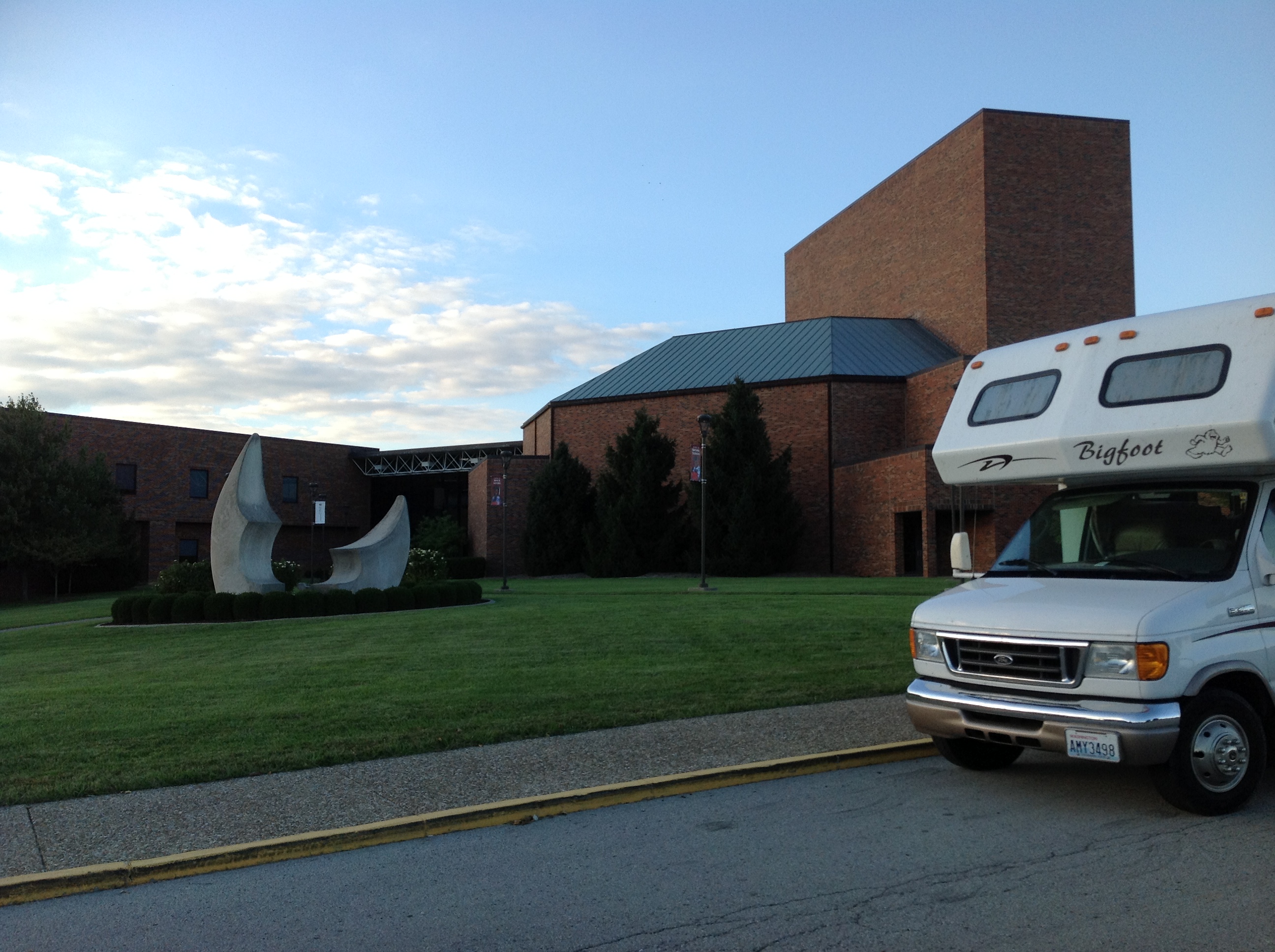 Gabby the Tinker Tour bus parked on the campus of Indiana University Southeast during campus visit Oct. 9