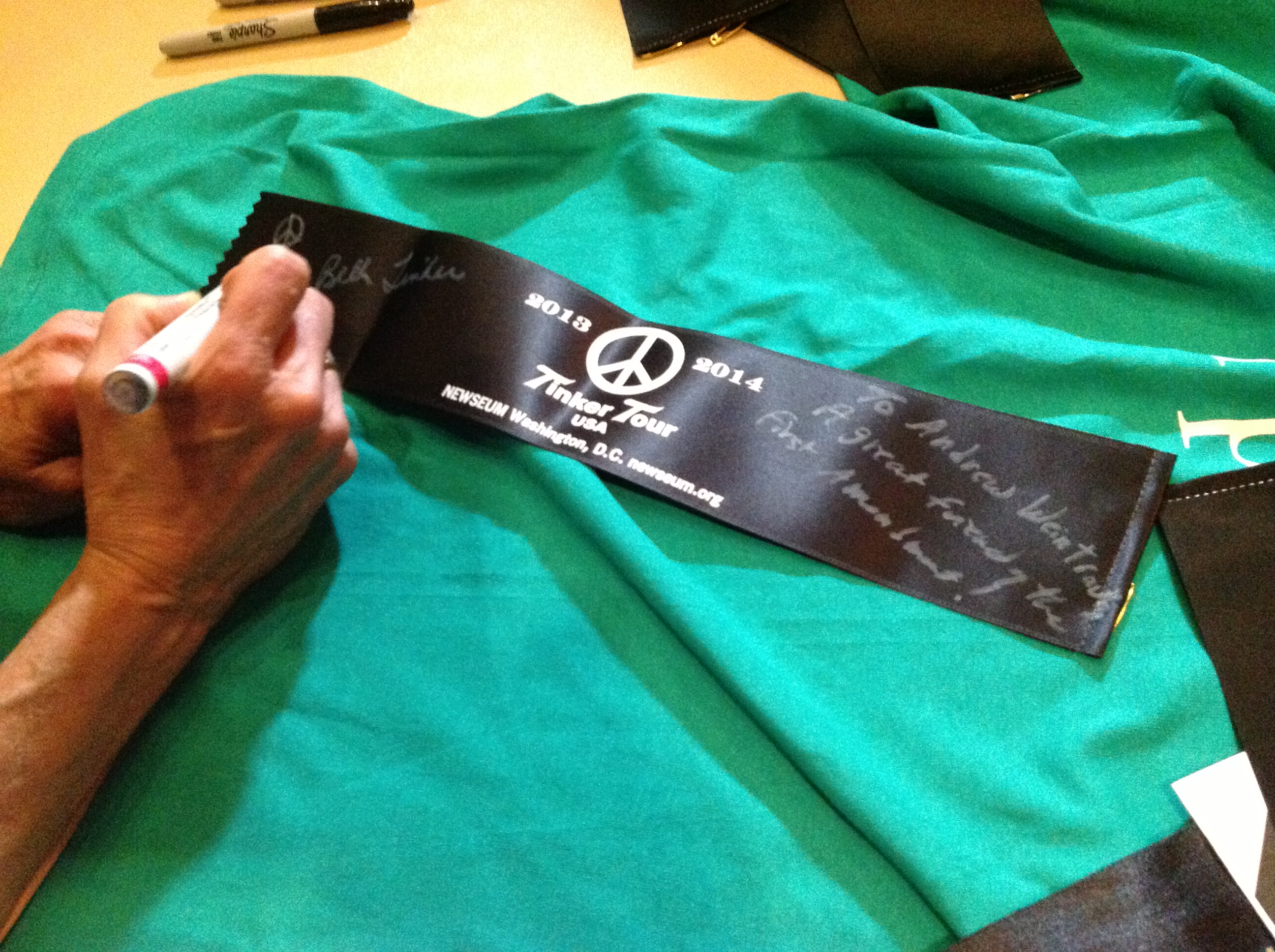 IUS5 Published October 12, 2013 at 2592 × 1936 Mary Beth Tinker signs armbands following her Oct. 9 talk at Indiana University Southeast