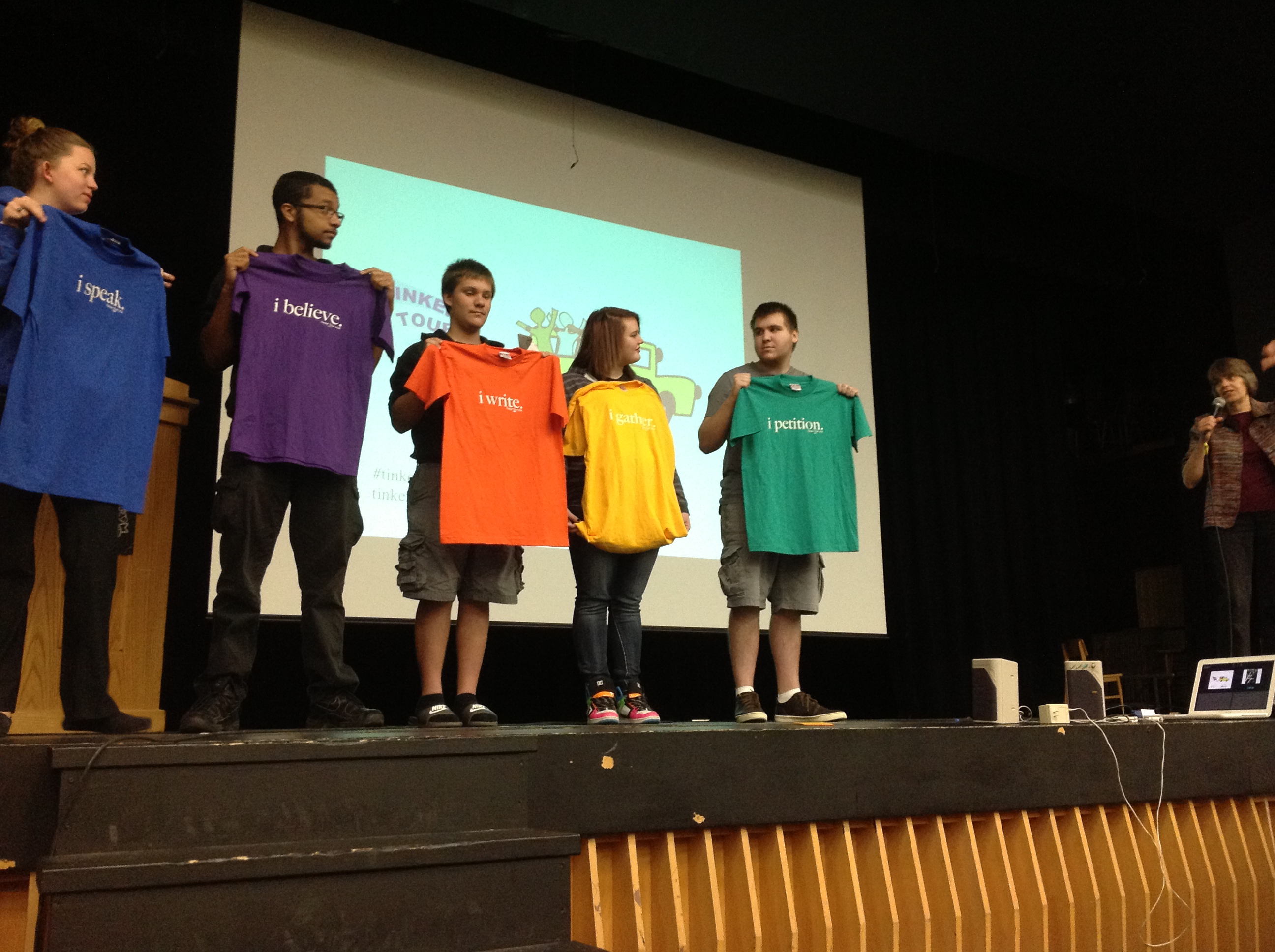 Students talk about the First Amendment’s five freedoms Oct. 17 at Nathan Hale High School in West Allis, Wisc..