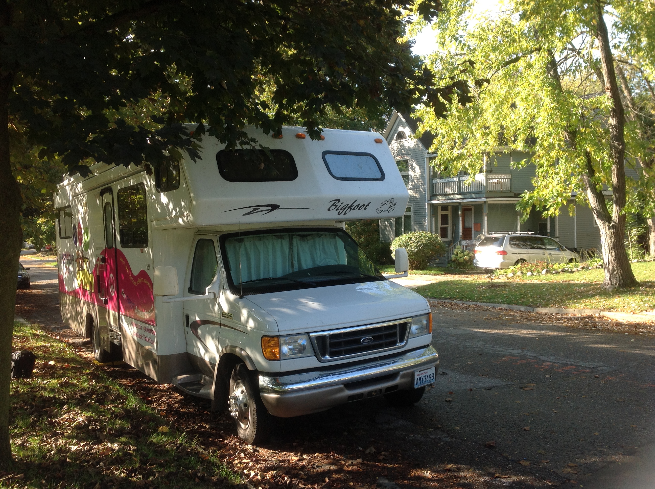 MIPA_1117 Published October 20, 2013 at 2592 × 1936 Gabby the Tinker Tour bus parked outside Mary Beth Tinker’s brother Paul and wife Claire’s Ann Arbor, Mich., home Oct. 20.