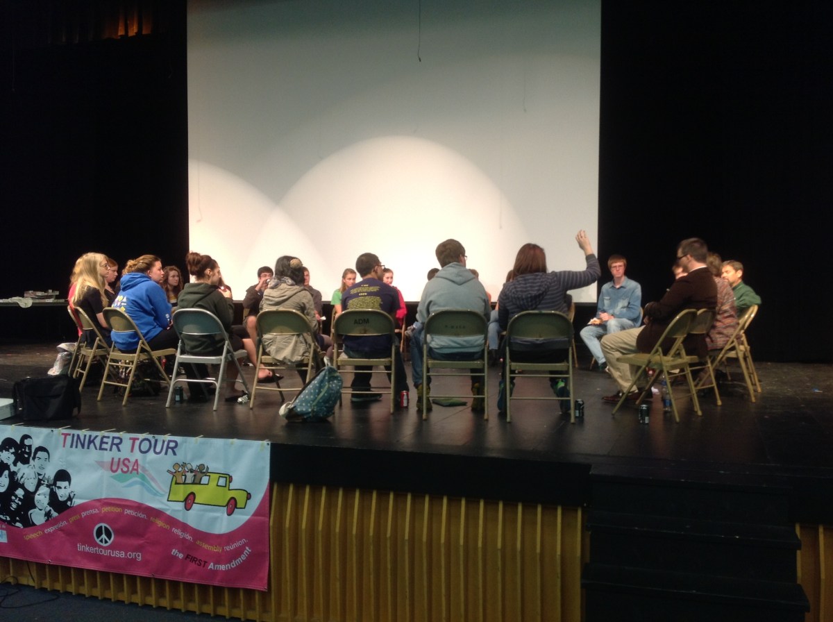 NHHS_1002 Published October 20, 2013 at 2592 × 1936 in Tinker Tour Session Descriptions ← Previous Next → Students share their concerns during roundtable talk during the Tinker Tour’s Oct. 17 stop at Nathan Hale High School in West Allis, Wisc. Like Loading...